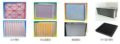 큰 먼지입자들을 제거하는 프리필터, 일반적인 환기설비에 주로 사용하는 미디움필터, 먼지에 민감한 병원·반도체 공장 등에서 사용하나 최근 일반 주택세대의 사용이 늘고 있는 헤파필터, 대규모 건축물에 사용하는 전기집진필터가 있다.