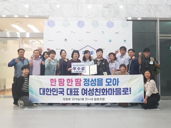 우수상에 선정된 ‘의정부시 언니네 협동조합’은 여성가족과의 ‘문·예·숲이 있는 마을 커뮤니티센터’사업으로 마련된 주민소통공간에서 시작한 문예숲 운영위원회의 자치활동, 마을계획단의 마을계획 등 2016년부터 4년간 주민자치활동 실적을 바탕으로 언니네 수선방 언니네 가게 언니네 배움터 등 구)가능3동의 맞춤형 도시재생 아이디어를 발굴했다.