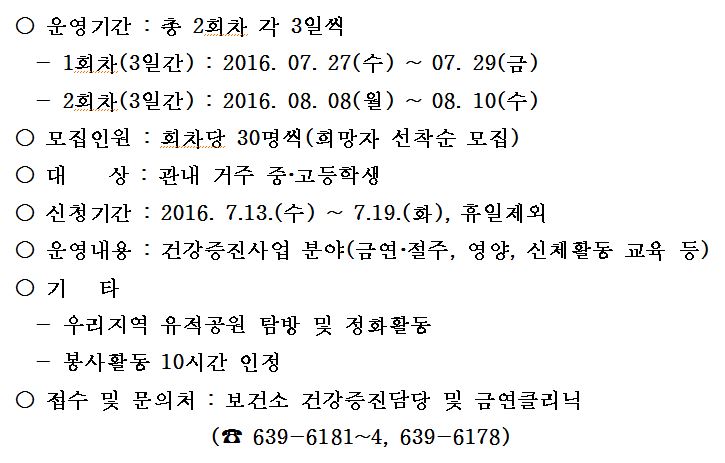 거제시보건소, 2016년 청소년 건강지도자 교실 참가자 모집