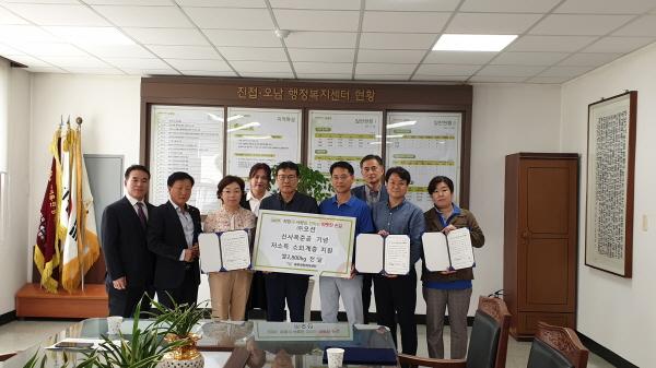남양주시 진접오남행정복지센터는 지난 9월 30일 진접읍 지역사회보장협의체, 북부희망케어센터와 함께 지역사회 소외계층과 복지사각지대 지원을 위해 ㈜오션와 후원협약을 체결했다.