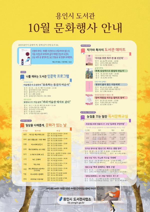 용인시 도서관, 10월 행사…인문학 특강 · 독서문화체험 등
