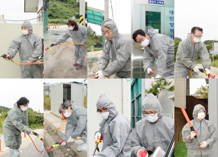 이번 방역 활동은 국내 최초로 발생한 아프리카돼지열병의 전국적 확산이 우려됨에 따라 시민의 대표인 시의원들이 먼저 방역활동에 참가해 오랜 시간 근무하는 직원 및 관계자들을 쉬게 하고 운영상황 등 애로사항을 파악하고자 마련됐다.