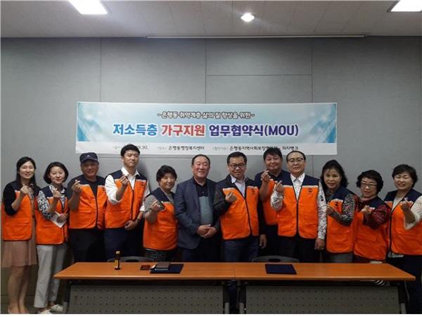 이날 협약식에서 의자뱅크는 은행동 저소득층 가구의 삶을 질 향상을 위해 연5회 가구 지원을 기부 약속했다.
