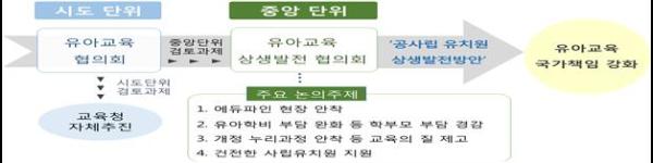 지역별 협의회가 제안한 내용 중 보다 큰 틀에서 논의가 필요한 사항에 대해 중앙단위인 ‘유아교육 상생발전협의회’에서 협의하여 ‘상생발전방안’에 담아낼 예정이다.