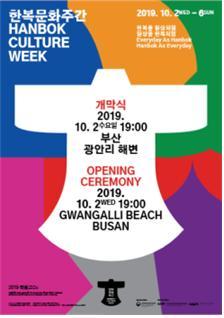 10월 5일 저녁 5시 30분부터 8시까지 부산 광안리 해변에서는 2019 한복문화주간 축하공연이 열린다. 이 행사는 당초 10월 2일에 같은 장소에서 개막식으로 개최할 예정이었으나 제18호 태풍 미탁의 예상 이동 경로에 따른 국민 안전 대비를 고려해 일정을 변경했다.