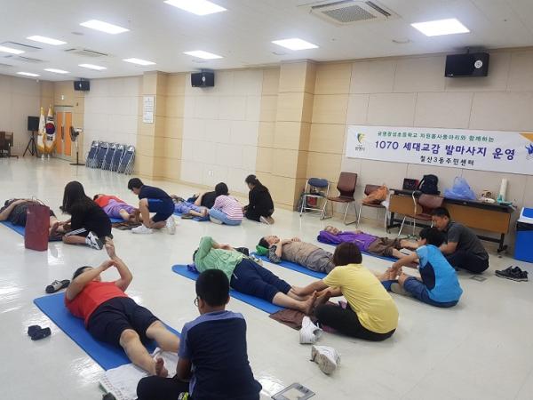 1070 세대교감 발마사지는 자원봉사동아리 학생 13명이 주축이 되어 관내 소외계층 어르신들에게 발마사지 봉사를 하는 것으로 누리복지협의체 위원인 광성초등학교 장일영 선생님이 4개월간 6학년 학생들을 대상으로 손발마사지 교육을 실시한 후 지역 어르신들을 위한 봉사활동에 나섰다.