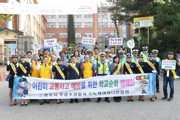 광주시는 지난 1일 탄벌초등학교 정문에서 신동헌 시장, 시의원, 광주경찰서, 광주시녹색어머니연합회, 광주시모범운전자회, 교직원, 학부모, 지역사회단체 등 80여명이 참여한 가운데 교통안전 캠페인을 실시했다.