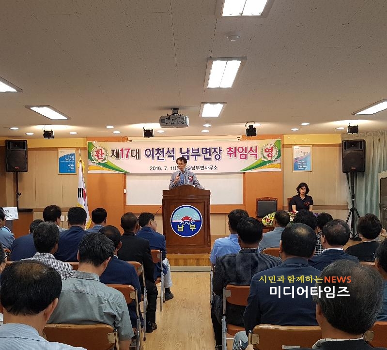 [미디어타임즈 = 최귀복 기자] 이천석 제17대 남부면장 취임식이 지난 11일 남부면사무소 회의실에서 개최됐다.