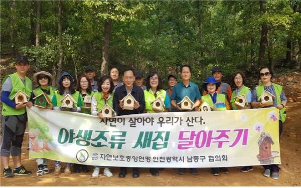 인천 남동구는 지난달 30일 자연보호 남동구 협의회와 공동으로 전체 도시숲으로 보존된 장아산 근린공원 등에서 새집 달아주기 봉사활동을 펼쳤다.