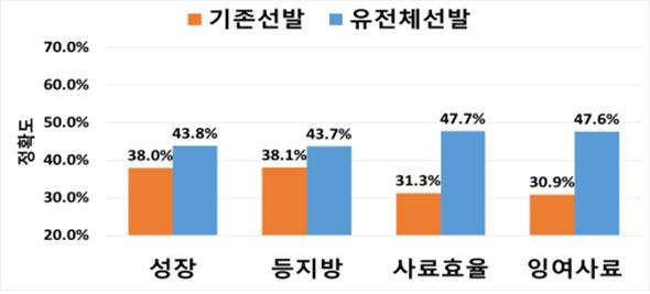 유전체 선발은 개체의 유전체 정보와 표현형, 가계 정보를 결합해 씨가축을 선발하는 방식으로 기존보다 우수한 씨돼지를 정확하게 뽑을 수 있다.
