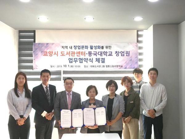 고양시 도서관센터는 지난 1일 동국대 창업원과 지역 내 창업생태계 활성화를 위해 업무협약을 체결했다.