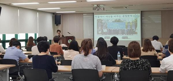 이 날 교육은 현재 한국공정무역마을위원회 공동위원장이며, 라이프인 사회적협동조합 이사장이신 이영희 강사님이 공정무역의 이해와 공정무역마을운동의 목표 및 현황, 계양구 공정무역 마을운동의 나아갈 방향에 대한 강의로 진행됐다.