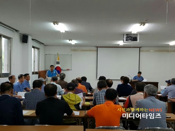 | 12일, 하청면 주민자치위원회가 하청농협 회의실에서 관내 이장 30여 명과 함께 하반기 성공적인 사업 추진을 위한 간담회를 열고있다. |