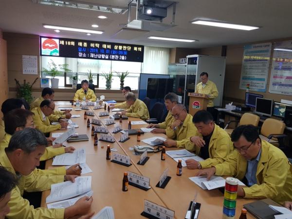 이날 상황판단회의는 홍인성 구청장 주재로 열렸으며, 태풍의 이동경로와 우리나라에 미치는 영향을 확인하고 자연재난 협업부서에 대한 조치사항과 대처계획을 점검·확인했다.