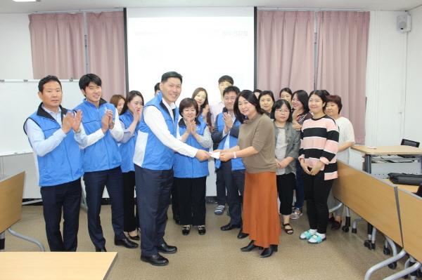 이날 후원금 전달식은 동두천시건강가정·다문화가족지원센터 3층 배움드림방에서 이정숙 센터장과 임영석 지점장을 비롯해 센터 직원과 우리은행 직원 21명이 참석한 가운데 진행됐다.