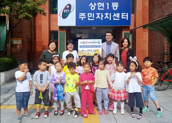 용인시 수지구 상현1동은 지난 1일 시립광교어린이집 원생과 학부모들이 어려운 이웃을 도와달라며 성금 102만2500원을 기탁했다고 밝혔다.