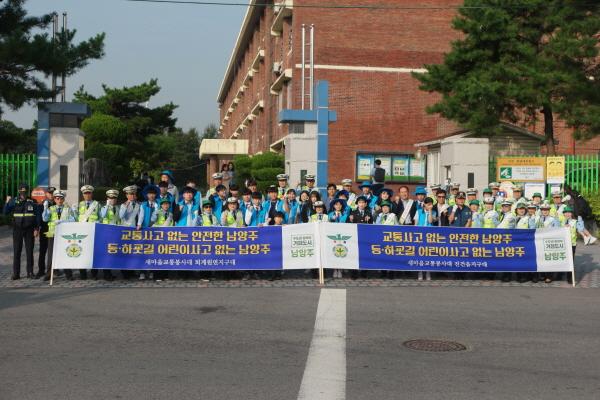 새마을교통봉사대 남양주시지대는 지난 1일 진건중학교 앞 사거리에서 ‘등·하굣길 어린이사고 없는 남양주 만들기 캠페인’을 진행했다.