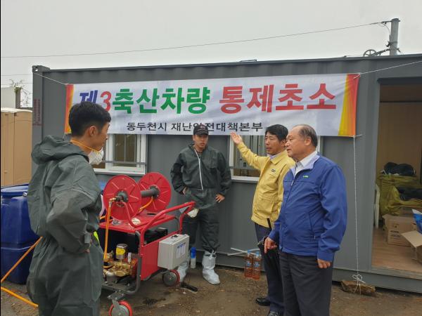 동두천지역은 아프리카돼지열병 확산 차단을 위해 공무원과 경찰, 군병력 등이 총 동원되어 전사적인 방역활동을 펼치고 있으며, 현재 1개의 거점소독시설과 3개의 차량통제초소, 11개의 농장초소를 설치·운영하고 사람과 가축, 차량에 대한 이동통제와 소독 등 긴급 방역을 취해오고 있다.
