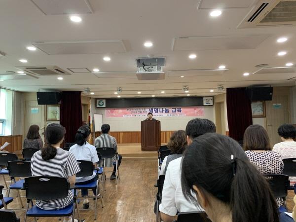 질병관리본부 장기이식관리센터 소속 김태균 강사를 초빙하여 진행된 이번교육은 생명나눔의 필요성, 생명나눔의 개념, 기증절차 등에 대한 이해를 높이기 위해 마련됐다.