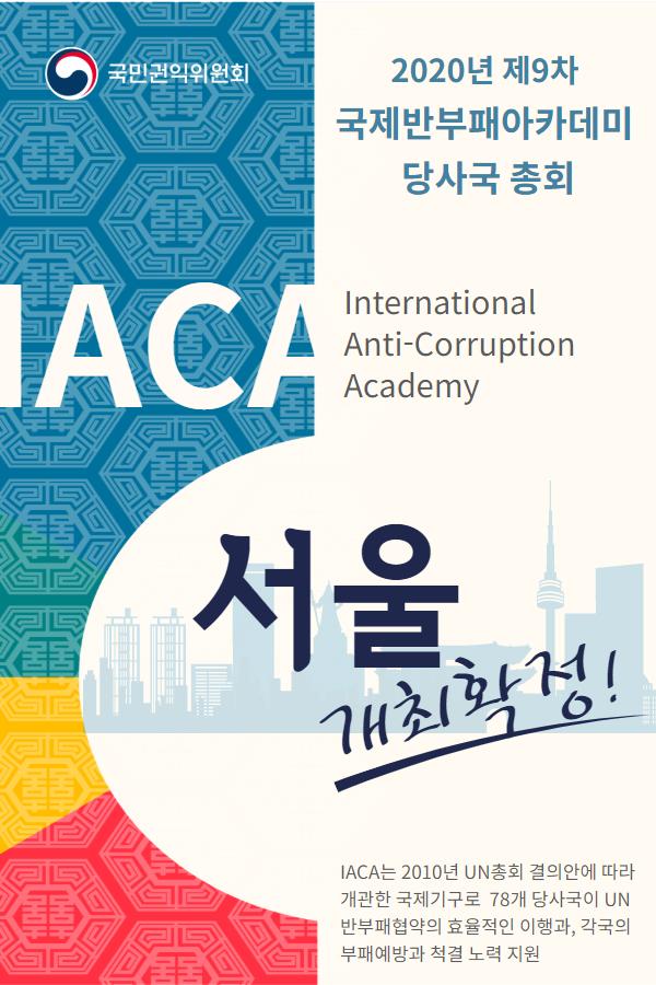 지난해 IACA 이사로 당선된 국민권익위원회 박은정 위원장은 이번 당사국 총회 기조연설에서 내년 서울에서 열리는 제9차 IACA와 제19차 국제반부패회의에 대한 많은 관심과 참여를 부탁했다.