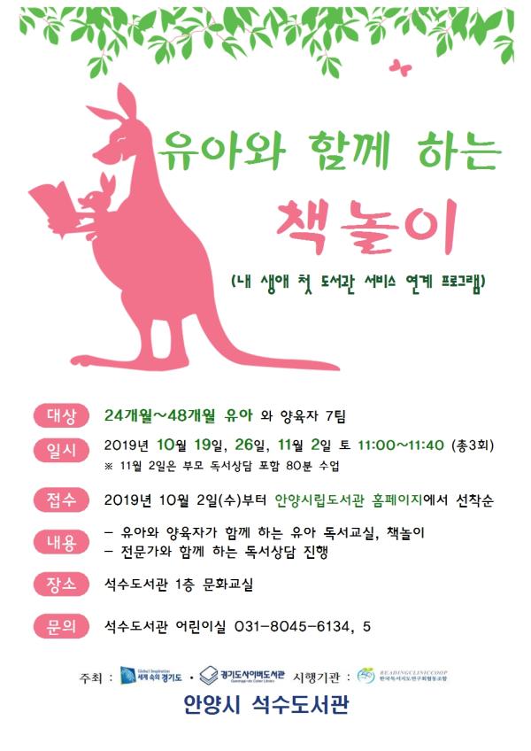 안양시 석수도서관에서는 오는 19일부터 운영하는 ‘유아와 함께 하는 책 놀이’프로그램 참여자를 선착순으로 모집한다.