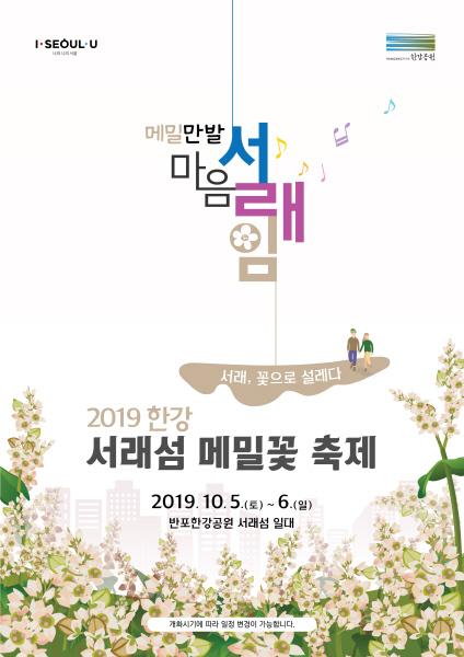 ‘2019 한강 서래섬 메밀꽃 축제’에 방문하면 높은 하늘아래 파란 한강을 따라 약30,000㎡에 달하는 서래섬에 마치 새하얀 소금이 뿌려진 듯 드넓게 펼쳐진 메밀꽃밭을 마주하게 된다.