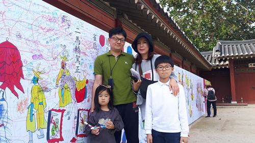 대전에서 온 김홍일 가족은 ‘그리하라’ 전시장에서 열심히 낙서를 했다.
