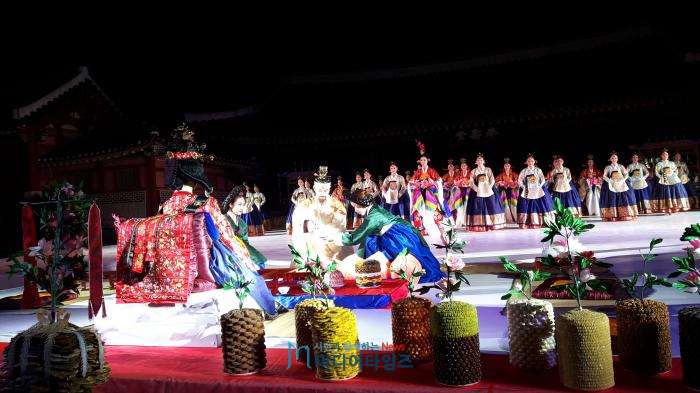 [산수화 기자단=미디어타임즈] 제 56회 수원화성문화제에서 정조대왕이 회갑을 맞은 어머니 혜경궁 홍씨의 장수와 평안을 위해 벌였던 진찬연이 224년 만에 현대적으로 재해석 됐다.