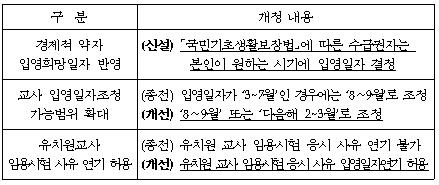 기초생활수급자, 학년담임교사, 유치원교사 임용시험 응시자를 위한 현역병 입영제도 개선