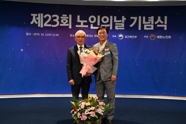 이창순 대한노인회인천남동구지회장이 제23회 노인의 날을 맞아 최근 서울 중구 대한상공회의소에서 열린‘제23회 노인의날 기념식’에서 국민포장을 수상하는 영예를 안았다.