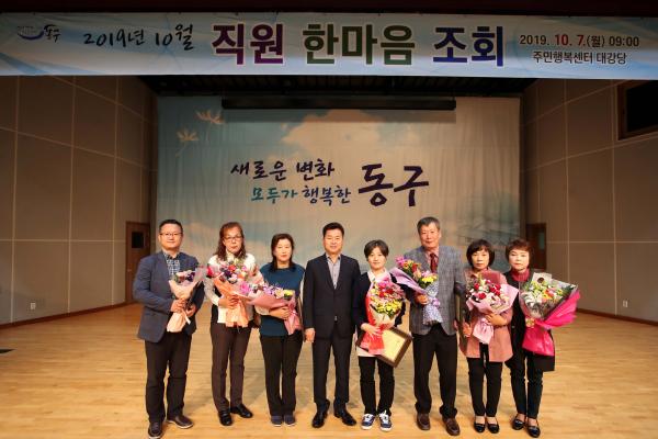 인천 동구는 7일, 주민행복센터에서 전 직원이 참석한 가운데 10월 직원 한마음 조회를 개최했다.