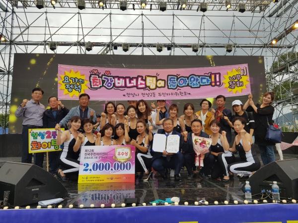 이날 대회는 10월 4일~5일 양일간 전국 시군을 대표하여 총 35개팀 700여명이 참가한 예선대회에서 최종 선발된 12개팀의 본선 무대로 이뤄졌으며, 안성2동 비너스팀은 우수상을 수상하는 영예를 안고 시상금 2백만원을 수여 받았다.