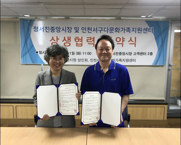 인천 서구 정서진중앙시장상인회와 서구다문화가족지원센터가 시장 상인들의 글로벌 역량 강화를 위해 서로 협력하기로 했다.
