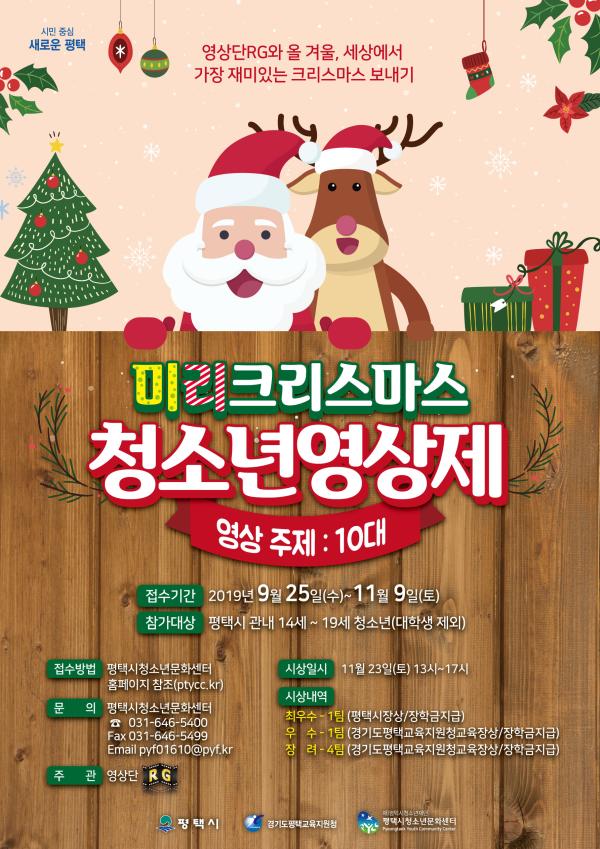 영상제는 관내 14~19세 청소년이 참가할 수 있으며, 자세한 내용은 평택시청소년문화센터 홈페이지 공지사항을 참고하면 된다.