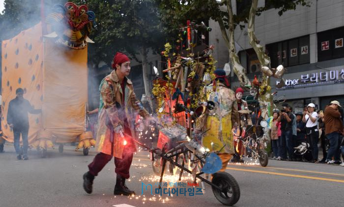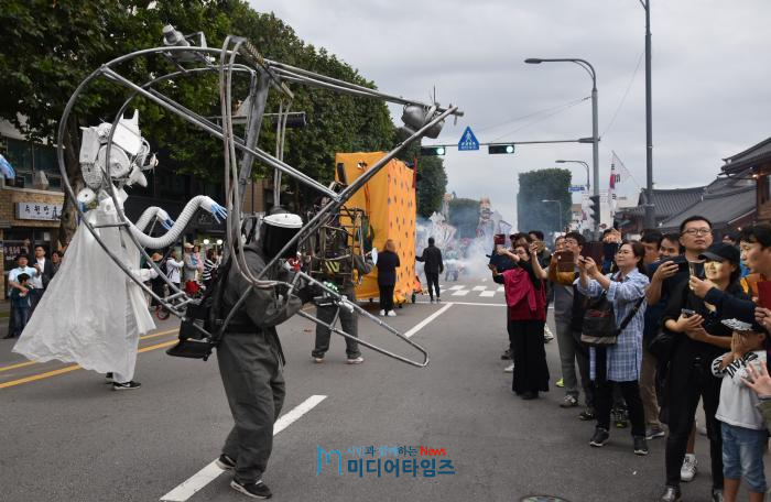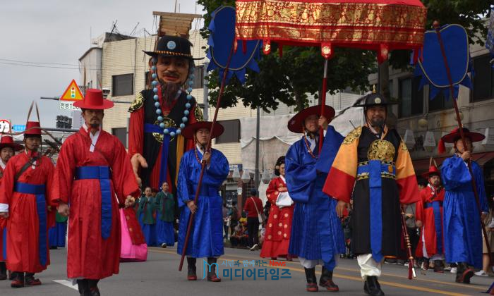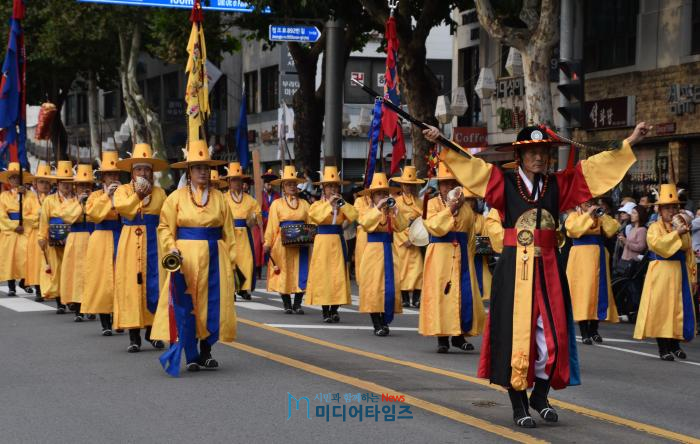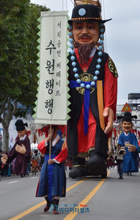 [산수화 기자단=미디어타임즈] 정조와 함께하는 시민들의 즐거운 거리축제 ‘시민 경연 및 공연 퍼레이드 행행(行幸)’이 6일 오후 1시 50분부터 저녁 6시 30분까지 장장 4시간 40분에 걸쳐 전개됐다.