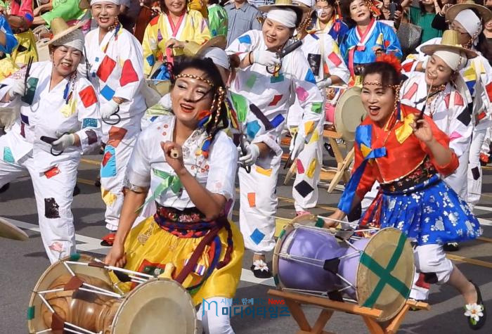 ‘연합풍물단 대동놀이와 한복 퍼레이드’는 거리축제의 흥을 돋웠다. 연합풍물단 300명이 오방기 풍물공연으로 신명을 자아냈고 수원 아낙네 150명은 한복의 아름다움을 한껏 뽐냈다.