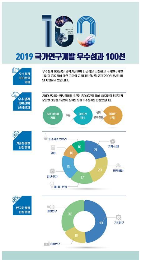 과학기술정보통신부와 한국과학기술기획평가원은‘2019년 국가연구개발 우수성과 100선’을 선정하여 발표했다.