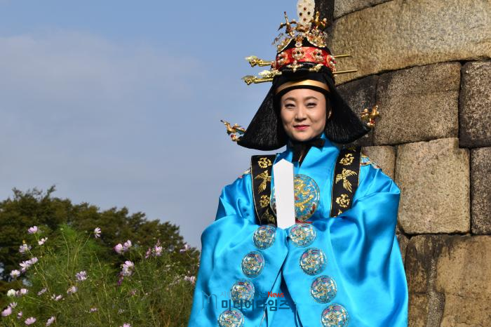 | 5일 오후, 안혜영 부의장이 수원화성 화서문 특설무대에서 ‘2019 Again Joseon-시민과 함께 조선을 거닐다' 행사를 마치고 본지 기자의 요청에 포즈를 취하고 있다. <사진=ⓒ미디어타임즈> |