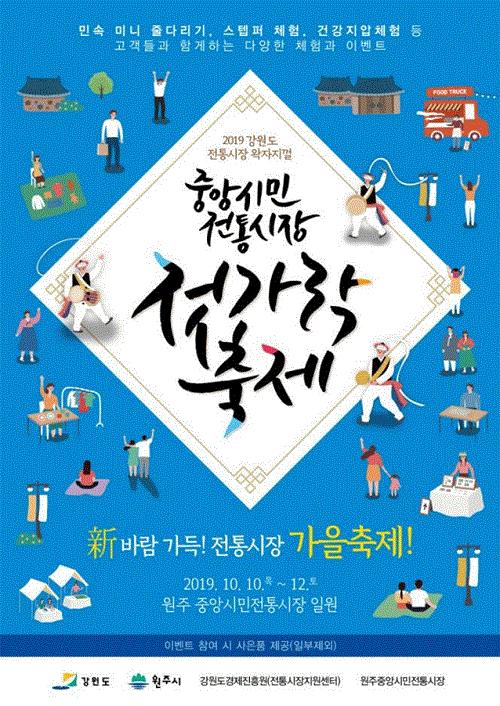 활력있는 전통시장 육성을 위한 2019 왁자지껄 전통시장 마케팅 행사 ‘중앙시민전통시장 젓가락 축제’가 오는 10일부터 12일까지 3일간 원주 중앙시민전통시장 일원에서 열린다.