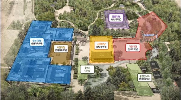 도심 한복판에서 고풍스런 한옥 명소인 남산골한옥마을의 천우각, 서울남산국악당, 전통가옥, 광장 등 전체가 잔치마당, 시간마당, 풍류마당 대동마당, 잇는마당으로 나뉘어 축제와 체험의 장이 된다.