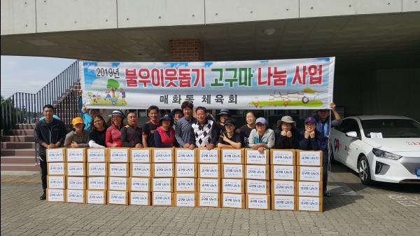 매화동 체육회는 지난 6일 체육회, 자원봉사자협의회, 주민센터 공무원 등 30여명이 참석한 가운데 ‘사랑 나눔 고구마’ 50상자를 수확했다.