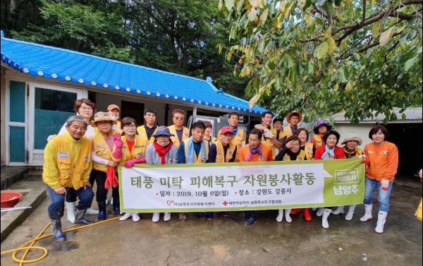 남양주시자원봉사센터는 지난 6일 자원봉사단체 봉사자들과 함께 18호 태풍‘미탁’의 영향으로 피해를 입은 강릉시 강동면과 옥계면에 방문해 피해복구 자원봉사활동을 진행했다.
