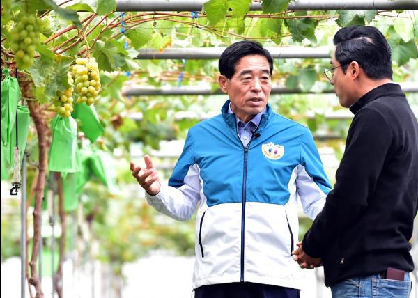 윤화섭 안산시장이 지난 7일 대부도의 한 포도농가에서 안산시 홍보대사 개그맨 이문재와 배우 이세창 등과 함께 대부도 샤인머스켓을 알리는 유튜브 생방송을 진행했다. 이날 출연자들은 포도 따기 체험과 대부도 포도, 와인, 포도 고추장으로 만든 비빔밥 등을 맛보며 대부도 포도의 우수성을 홍보했다. 윤화섭 시장은 “대부도의 자랑 샤인머스켓을 많은 시민들이 맛보길 바란다”며 “대부도에는 우수한 포도 외에도 다양한 먹거리, 볼거리가 가득하다”고 말했다.