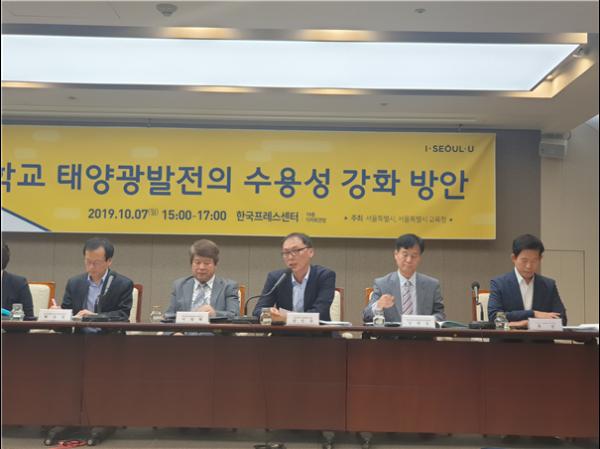 이 날 토론회는 조희연 서울시교육감, 서울시 녹색에너지과장, 서울시교육청 교육재정과 재산관리팀장 등이 참석한 가운데 기조 발제와 토론이 진행 됐다.