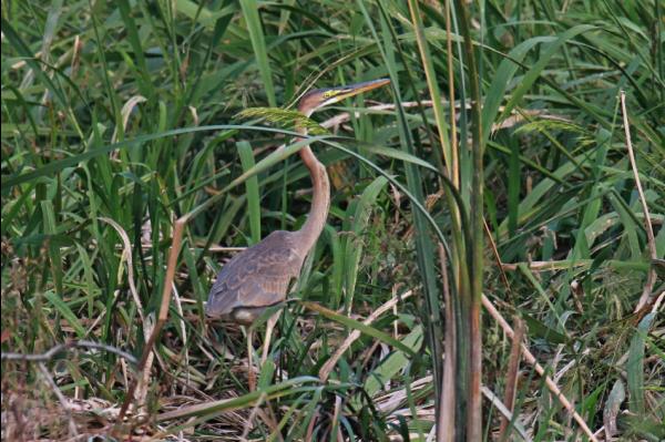 붉은왜가리 Purple Heron, 학명 : Ardea purpurea는 국내에서 극히 드물게 관찰되는 새로, 봄과 가을에 우리나라를 통과하는 나그네 새다.