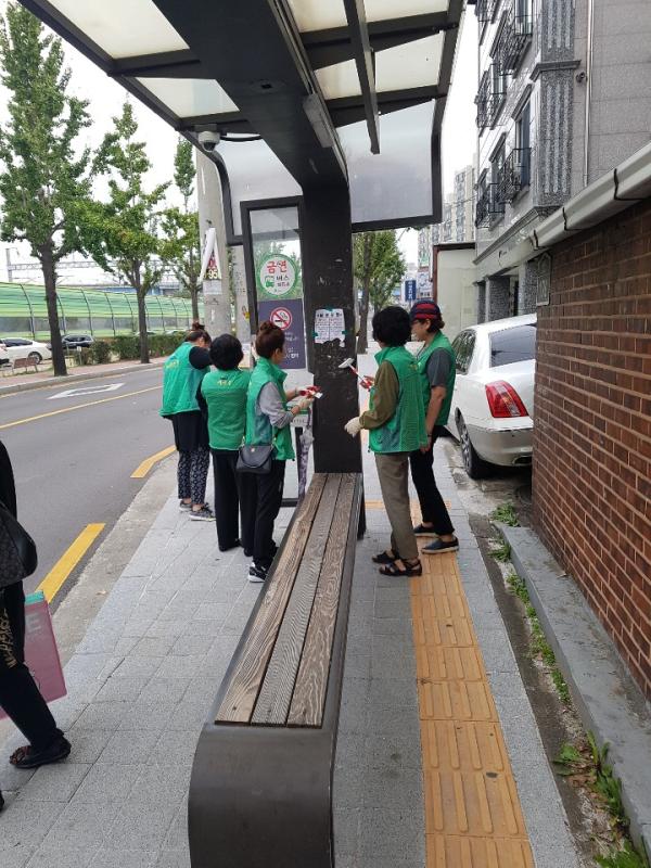 비가 오는 궂은 날씨에도 불구하고 버스승강장 환경정비와 쓰레기 적치 상습지역 및 도시미관 개선이 필요한 5개소에 대해 국화, 아스타 등 가을꽃 320본을 식재했다.
