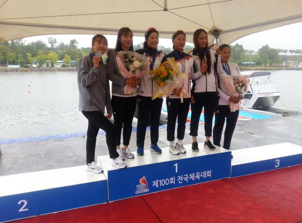 옹진군청 카누선수단이 지난 7일 미사리한강카누경기장에서 열린 ‘제100회 전국체육대회’에서 카누 여자일반부 K2-500m에 출전해 1분56초의 기록으로 금메달을 목에 걸었다.