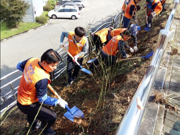 행사에 앞서 지난 9월 29일에는 정우금속공업 봉사단에서 울타리 주변 사전 제초작업 등 묘목을 심기 위한 사전작업을 진행했다.