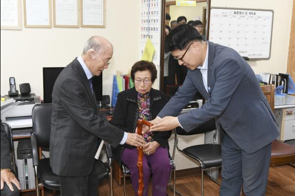 10월 2일 ‘제23회 노인의 날’을 기념해 증정하는 장수지팡이 ‘청려장’은 명아주라는 풀로 만든 가볍고 단단한 지팡이로 건강과 장수를 상징한다.