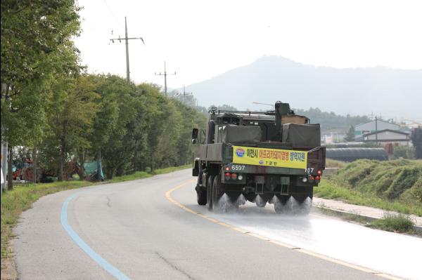 지원된 병력과 장비는 주로 차량이 다니는 도로에서 방역작업을 하고 있으며 육군 7군단과 항공작전사령부에서는 제독차 10대를 편성하여 이천시 전역에서 방역차량을 운영하고 있다.